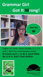 Somehow, Grammar Girl took us back to letters, not sounds, for vowels. Grammar Girl recommends saying, “The O-W represents the dipthong ‘ow’ …the O-Y… the diphthong ‘oy.'” No. We’ve already established that vowels are sounds and that the diphthong /ow/ has two distinct sounds. It really does matter that the w is a vowel.